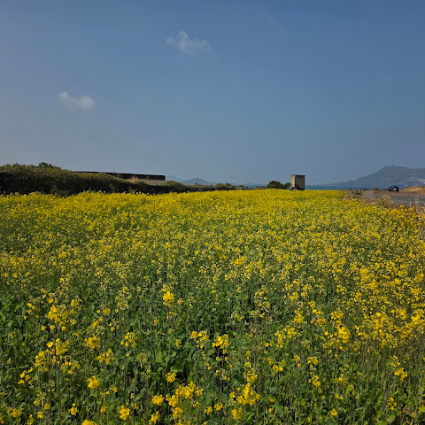 유채꽃이 빽빽하게 피어 있어 풍경이 아름답습니다. 사진 찍기에 아주 좋은 장소입니다.