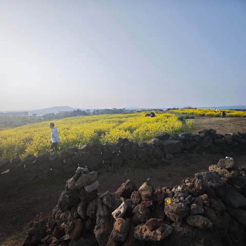 ✅ 유채밭과 말들: 봄철에 특히 인기 있는 곳입니다. 산책로 양옆으로는 화려한 유채꽃이 만발하고, 들판에는 제주 조랑말들이 한가롭게 풀을 뜯고 있습니다. 멀리 성산일출봉이 보이는 풍경은 사진 촬영 명소로도 손색이 없습니다.