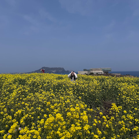 섭지코지에서는 다채로운 경험을 즐길 수 있습니다. 봄에는 유채꽃 축제가 열려 황금빛 유채꽃밭이 푸른 바다와 아름다운 대비를 이루며, 기념사진 촬영에 더할 나위 없이 좋은 장소입니다.