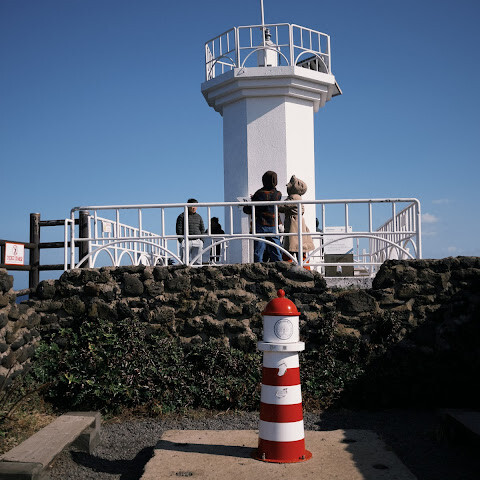 ✅ 방두포 등대: 붉은 화산 언덕 꼭대기에 자리한 하얀 등대가 트레킹의 종착점입니다! 철제 계단을 따라 등대 꼭대기에 오르면 방두포 해안선 전체와 멀리 우도 섬까지 360도 파노라마 전망을 감상할 수 있습니다.