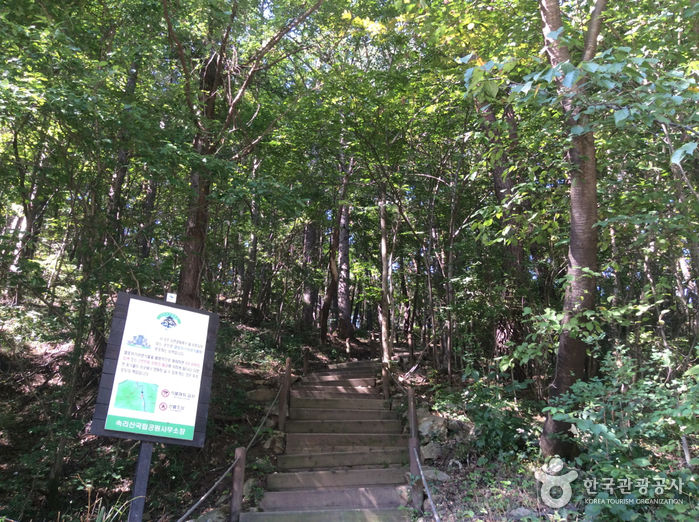 군자산은 쌍곡 제2곡인 소금강에서 다리를 건너면 솔밭 맞은편에 닦아 놓은 비포장 주차장에서부터 시작한다. 등산로를 따라 15분만 가면 화석바위 꼭대기의 하늘벽 전망대에 닿는데, 여기만 와도 쌍곡 도로가 저 아래로 보이며 높은 산에 오른 기분이다. 산길은 온통 노송이 가득하다. 소금강의 상단부를 지나며 오른쪽으로 내려다보면 아찔할 정도로 깎아 세운 절벽이다. 울퉁불퉁한 길을 올라가면 5m 정도의 세미클라이밍 지대에 올라서며, 다시 한번 훤히 트인 전망대에서 쌍곡계곡을 조망할 수 있다. 8부 능선의 비탈길을 올라 능선길을 밟기 시작하여 20분 정도 가면 정상으로 가는 길목의 작은 봉우리에 닿는데 여기서는 군자산의 정상이 높이 올려다보이며, 사방이 잘 보여 자연 전망대라고 부른다. 이 봉우리를 오르지 않고 허리를 돌아 정상으로 오를 수 있는데 자연 전망대에서 정상까지는 30분 정도 계속 오르막이다. 정상은 10여 m의 공터가 마련되어 있다. 정상에서 보면 동으로 쌍곡계곡의 하얀 속살이 실타래처럼 늘어져 있고 가까이 보개산, 칠보산으로부터 희양산, 백호산, 악휘봉으로 이어지는 험준한 산맥의 흐름이 고고하기만 하다. 남으로는 작은 군자산 너머로 대야산 그 너머로 속리산의 연봉들이 공룡의 등처럼 울퉁불퉁하다. 하산은 두 길이 있으며 북쪽으로 난 바위봉을 넘어 헬기장을 지나 30여분 내려가면 원효대사가 수도했다는 원효굴이 나오는데 바위굴로, 굴 안에서는 물이 샘솟는 바 깨끗지 못한 사람이 오면 물이 흐려지거나 벌레가 생겨 못 먹게 된다고 한다. 여기서 목장 길 능선을 따라 40분 정도 내려오면 학동마을에 닿게 된다. 가장 많이 이용하는 하산로는 남쪽의 능선을 타고 30분 정도 가면 확 트인 바위 봉우리에서 남쪽의 가리지 않은 모습을 볼 수 있으며, 다시 30분 정도 내려가면 사은리로 넘어가는 도마재에 닿고 여기서 왼쪽 내리막길을 택하면 너덜지대를 통과하여 50분 정도면 도마골의 큰길에 도착하여 산행을 마칠 수 있다.