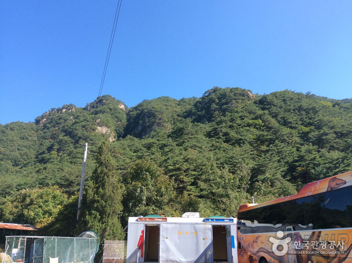 산행의 시작은 쌍곡 9곡의 제3곡인 떡바위에서 시작한다. 떡바위에서 건너다보이는 큰 바위는 제4곡인 문수암이며 등산로는 그 문수암을 타고 올라서면 뚜렷이 보인다. 떡바위를 떠난 지 20분이면 제1봉에 도착한다. 1봉에서 2봉으로 오르는 중간에 노송과 너럭바위가 있는 전망대에서는 쌍곡의 용추(제6곡) 부근이 발아래로 내려다보인다. 2봉은 노송과 불끈불끈 일어선 바위들이 봉우리를 형성하고 있다. 2봉에서 3봉으로 오르는 길엔 줄이 매여 있고 중간에서 바위를 휘돌아 오르면 천혜의 전망대를 이룬 바위군이 있다. 3봉에서 내리막길은 10여 미터 수직이지만 로프가 매어져 있고 바위틈이 많아 쉽게 내려갈 수 있다. 다시 줄을 잡고 5분이면 4봉에 올라설 수 있는데 4봉과 5봉은 바위봉으로 오른쪽 쌍곡의 절말에서 올라오는 두 길이 합쳐진다. 6봉엔 잔솔과 가지를 쳐낸 소나무가 널려있다. 6봉에서 내려가는 길은 세 가닥 줄이 매여 있으며 10분이면 7봉에 도착한다. 7봉은 힘들여 올라왔지만 8봉과의 사이는 불과 100여 m로 굴곡을 크게 이루지 못한 채 아름다운 노송이 9봉으로 이어진다. 10봉까지는 5분으로 10봉은 20여 미터 마사길로 이어지며 지나온 9봉보다는 야트막하다. 10봉에서 남쪽 사면으로 줄을 잡고 내려오면 살구나무골의 강선대로 내려가는 길이 오른쪽으로 잘 나있다. 2~3분 올라서면 제11봉에 닿는데 11봉은 펑퍼짐하며, 원형은 잃지 않은 고사목과 넓은 공간을 휴식장소로 제공한다. 길이 소나무 사이로 잘 나있으며 연이어 비슷한 세 개의 봉우리가 나온다. 14봉에서 보면 100여 미터 반석이 남쪽으로 흘러내린 정상의 남단이 시원하게 올려다보인다. 5분 정도면 올라가면 바위로 된 정상부가 300여 미터 뻗어있다. 능선 정상에서의 조망은 동쪽으로는 백두대간의 희양산, 구왕봉, 장성봉으로 이어지는 호쾌한 능선과 막장봉으로 뻗어간 능선 위로 대야산과 중대봉의 위용이 가슴떨림 바로 그것이다.