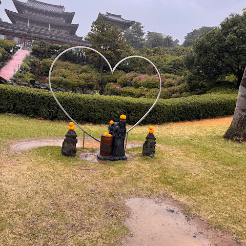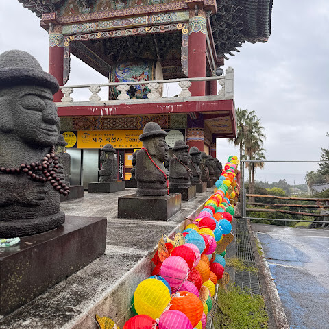 제주도에서 가장 큰 사찰은 면적이 매우 넓고, 도시에서 꽤 멀리 떨어져 있어 거의 제주도의 최남단에 위치합니다. 한국에서 사찰을 방문한 것은 처음이었습니다. 내부는 매우 조용했습니다. 우리 가족의 안전과 건강을 기도했습니다.