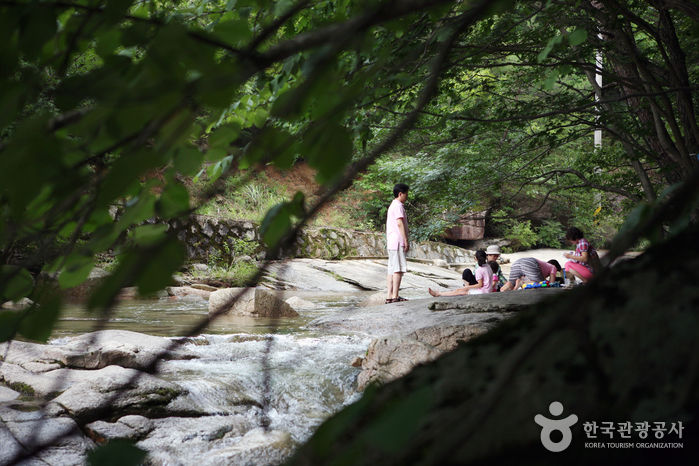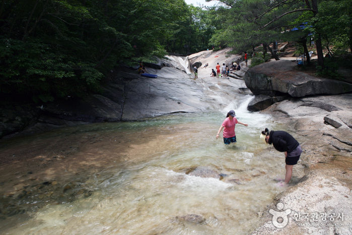 위 용추에서 잠시 머물던 물이 다시금 매끈한 암반을 미끄럼 타듯 흘러내려 부드럽게 이루어 놓은 것이 아래 용추로 흘러내려 하절기에는 개구쟁이 꼬마들의 미끄럼틀로 이용되기도 하는 곳이다. 용추폭포 위의 넓은 암반지대를 지나 20분쯤 올라가면 월영대가 있다. 휘영청 밝은 달이 중천에 높이 뜨는 밤이면 흰 바위와 계곡을 흐르는 맑은 물 위에 비친 달그림자가 더할 나위 없이 낭만적이라 하여 월영대라 한다. 용추계곡을 품은 대야산은 백두대간에 자리 잡은 문경의 산들 중에서도 그 명성을 높이 사고 있는 명산으로 2002년 세계 산의 해를 맞아 문경의 주흘산, 황장산, 희양산과 함께 산림청에서 선정한 한국 100대 명산에 이름을 올렸다. 용추계곡 옆에는 천혜의 자연 환경속에서 시민들이 휴식을 취할 수 있는 시설을 갖춘 국립 대야산자연휴양림이 있다. 숙박도 가능하며 용추계곡의 전설과 다양한 동〮식물의 생태를 알아보고 체험할 수 있는 [용추계곡트레킹], 물의 생태와 순환과정을 이해하고 숲의 물 정화를 이해하는 [대야산, 물을 품다] 등 숲속체험 프로그램은 용추계곡을 이해하는데 도움이 될 것이다. 인근에는 봉암사, 견훤 유적지, 운강 이강년 생가지, 문경새재 등 역사적으로 유명한 곳이 자리하고 있어 어린이들의 학습에도 도움을 주며, 도자기 전시관, 생태공원, 클레이 사격장, 레프팅, 드라마 오픈세트장 등이 있어 다양한 체험과 관광, 레포츠를 접할 수 있는 관광인프라가 잘 조성되어 있다.