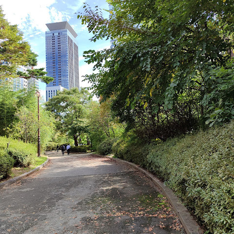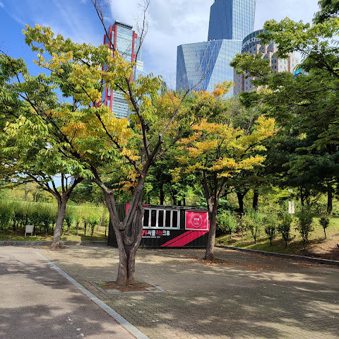 멋진 공원이에요! 건물들 사이에 있어요... 뉴욕 센트럴 파크처럼요. 공원은 깨끗하고 쥐도 없고 새들도 예쁘고, 직사각형 모양의 공원이에요. 영동포와 여의도 한강공원 사이에 있고, IFC몰 바로 옆에 있어요.