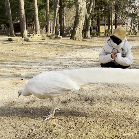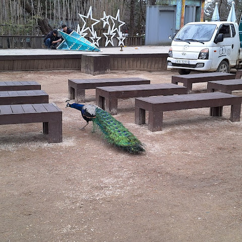 공원은 계절마다 분위기가 다르고 놀이기구도 있는 것 같았지만, 제대로 타보지는 못했어요 😅. 공작새, 까마귀, 다람쥐, 토끼 같은 동물들도 만났어요.