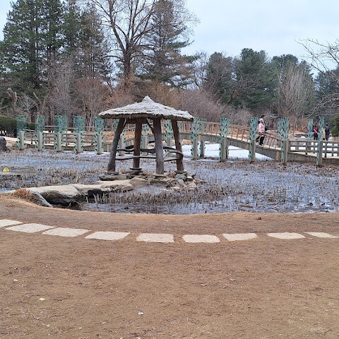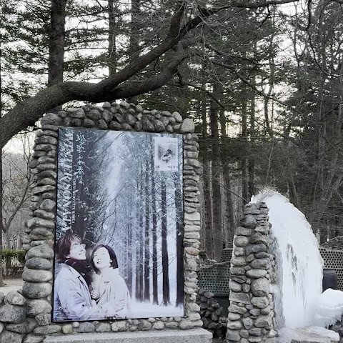이곳은 드라마 '겨울연가'로 유명한 관광지입니다. 나미섬까지는 배로 약 5분 정도 걸립니다. 근처에는 무슬림을 위한 기도실이 있습니다. 겨울에는 연못과 분수가 얼어붙은 모습을 볼 수 있습니다.