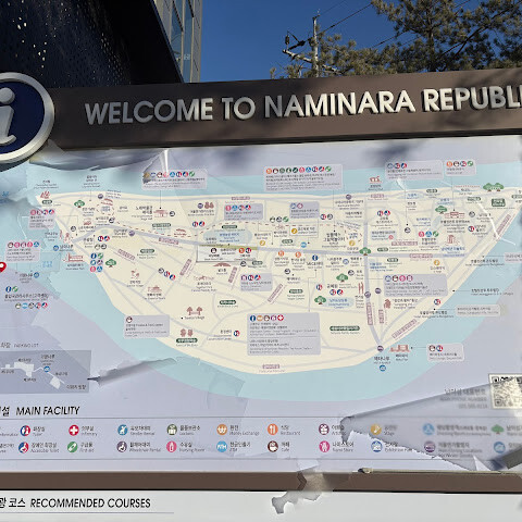 투어의 일환으로 남이섬에 갔습니다. 투어 가이드가 남이섬이 예전 한국 드라마와 관련이 있다고 말해줬는데, 제가 태어나기 전 드라마라 자세히는 몰랐습니다. 제가 흥미를 느낀 건 남이섬이 마이크로네이션이라는 점이었어요. 자체 국기, 화폐, 그리고 독특한 문화를 가지고 있더라고요. 섬에 가려면 페리를 타야 하는데, 짚라인도 탈 수 있어요.