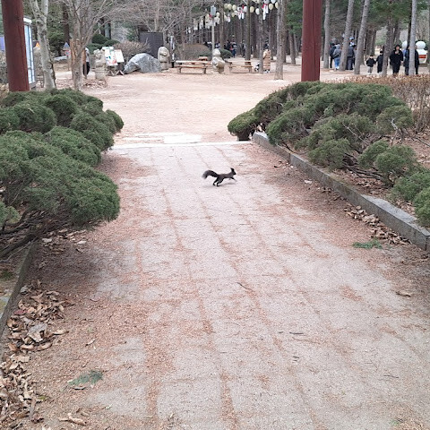 겨울이라 그런지 청솔모들이 나무 아래에 많이 내려와 있더라고요.