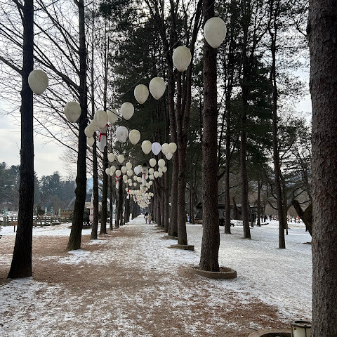 치유와 사색에 더할 나위 없이 좋은 곳이에요. 운 좋게도 나미섬이 새하얀 눈으로 뒤덮였을 때 방문했는데, 정말 숨 막힐 듯 아름다운 광경이었어요!