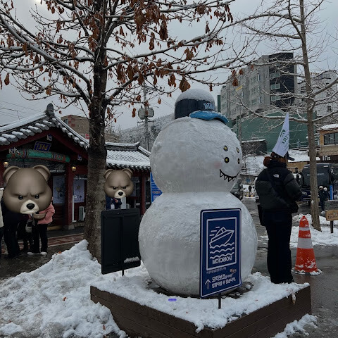 남이섬에서 겨울을 만끽하고 있어요. 눈도 내리고, 빠오번은 정말 최고예요!