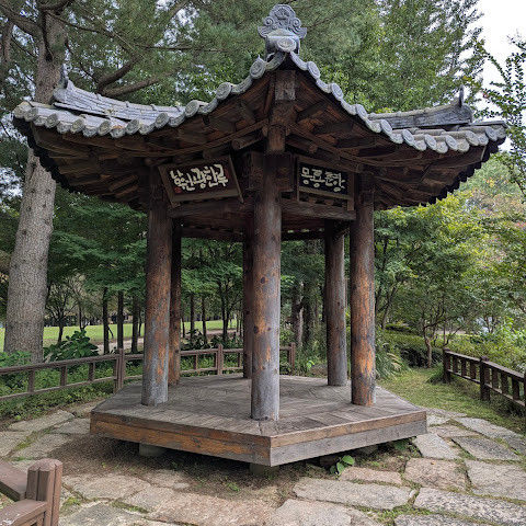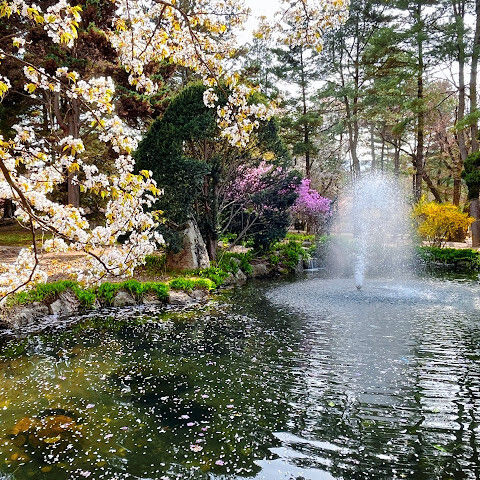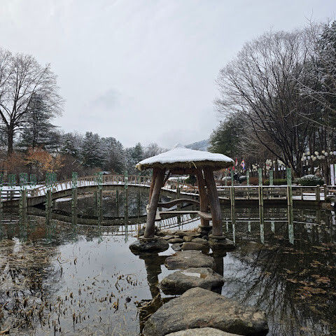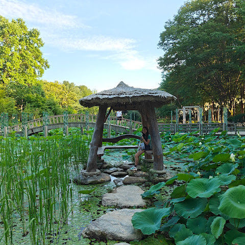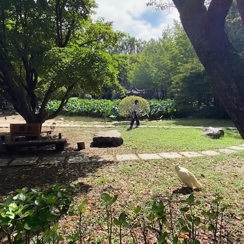 남이섬은 우뚝 솟은 나무 아래, 고요한 연못, 매력적인 폭포, 그리고 전통 정자를 지나는 아름다운 산책로를 자랑합니다. 공작새와 토끼들이 자유롭게 돌아다니며 방문객에게 가까이 다가가는 독특하고 고요한 곳입니다.
