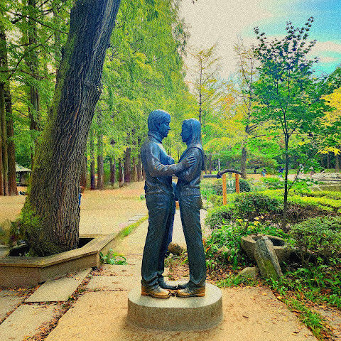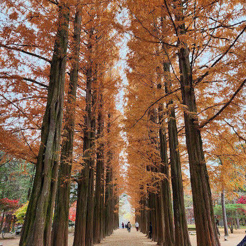 남이섬은 정말 동화 속에 나올 법한 아름다운 곳이에요. 정말 마법 같아요 🤩.