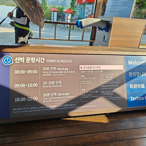 휴일이라면 피하는 게 좋을 것 같아요. 사람이 너무 많거든요. 가을에 오시는 걸 추천해요. 그리고 경치를 감상하려면 섬 바깥쪽으로 가시는 게 좋아요. 안쪽은 사람이 너무 많아요.
