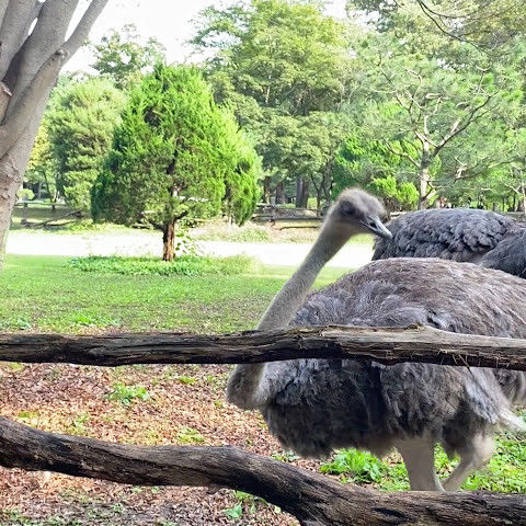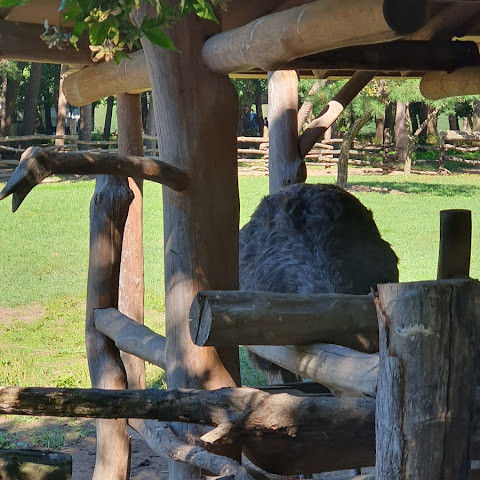 예전엔 타조들이 선안을 돌아다녔는데 관광객을 너무 괴롭혀 깡타집에 갇혀 지내고 있다는~