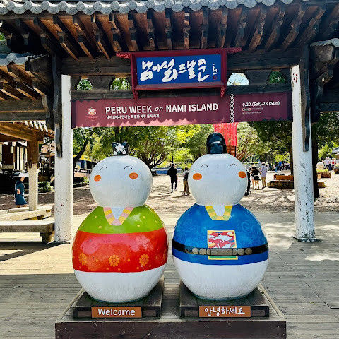 영화 겨울연가로 유명해진 남이섬. 2025년 9월 말, 초가을에 방문했습니다. 남이섬에 가는 방법은 두 가지가 있습니다. 1. 페리 2. 짚라인. 섬 전체가 아름답게 꾸며져 있고 관리가 잘 되어 있습니다.