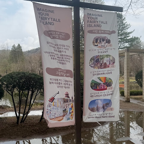 투어의 일환으로 남이섬에 갔습니다. 투어 가이드가 남이섬이 예전 한국 드라마와 관련이 있다고 말해줬는데, 제가 태어나기 전 드라마라 자세히는 몰랐습니다. 제가 흥미를 느낀 건 남이섬이 마이크로네이션이라는 점이었어요. 자체 국기, 화폐, 그리고 독특한 문화를 가지고 있더라고요. 섬에 가려면 페리를 타야 하는데, 짚라인도 탈 수 있어요.