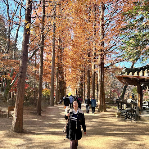 남이섬은 정말 마법 같은 곳이에요. 키 큰 나무 아래를 걸으며 계절마다 바뀌는 아름다운 색깔들을 보니 마음이 차분해지고 자연과 깊이 연결되는 느낌이 들었어요. 떠난 후에도 오랫동안 기억에 남는 곳 중 하나예요.