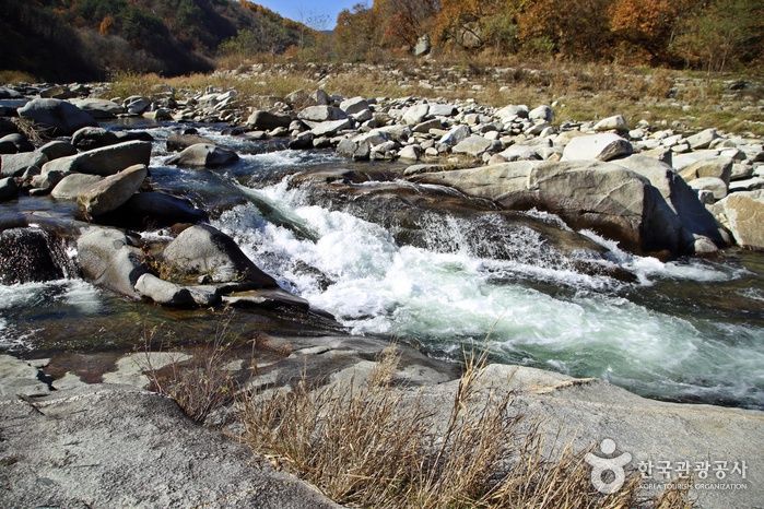 용이 머물다 승천했다는 천년전설을 고이 간직한 용담계곡은 대부분 암반위로 흐르는 물이 깨끗하고 암석으로 둘러쌓여 있을 뿐만 아니라 도처에 기묘한 폭포나 소, 그리고 암석들이 다양한 계곡을 형성하고 있다. 계곡 가운데는 가메소라 부르는 용소및 백운담 (곡운영당), 개똥소이 등이 있다.
