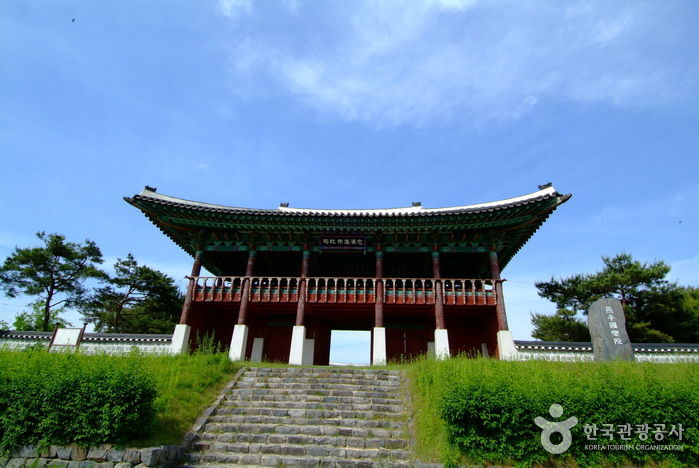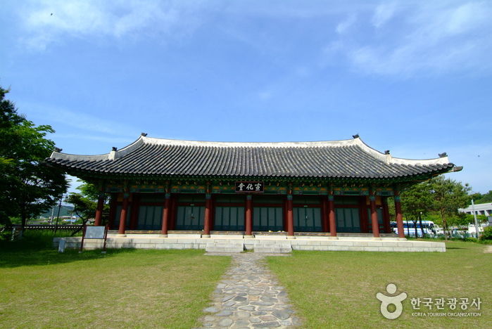 선화당은 충청도 관찰사의 행정청으로 사용되었던 건물이다. 처음에는 감영지에 자리하였는데 국립공주 박물관 안으로 옮겼다가 최근 다시 공주 웅진동으로 옮겨와 복원하였다. 충청도 관찰사는 처음 충청북도 충주에 있다가 1598년(선조 31)에 공주로 옮겼는데, 1646년(인조 24)에 큰 장마로 인하여 선화당이 떠내려 가서 금성동 성안으로 옮겼다가 1653년(효종 4)에 당시의 관찰사 강상연이 반죽동 공주사대 부속고등학교 자리로 옮겼으며, 1910년 국치를 당한 후 충청남도청이 되어 오다가 1931년에 도청을 대전으로 옮겨가고, 건물은 1938년 중동으로 그대로 이전하여 국립 공주 박물관 진열실로 이용되어 왔었다. 건물은 정면 8칸 측면 4칸의 평면으로 이루어져 있는데 이는 초창의 건물이 정면 9칸이었던 것을 이전 복원하면서 원형이 변경되어 정면 8칸으로 변화되었다. 건물의 내부는 통칸으로 넓은 공간을 두었고 기둥은 내진칸을 두도록 배치하면서 주위에 외진 칸을 만들어 퇴칸 형식을 취하고 있다. 공포는 무출목 이익공 계통으로 시설하였고, 창방이 있는 주칸에는 운공이 있는 화반을 3구씩 배치하여 장설을 받쳐 주어 관아 건축의 장엄을 유지하고 있다 (문화재지정일 : 1980. 12. 29). 건물의 내부는 통칸으로 넓은 공간을 두었고,기둥은 내진주를 두면서 주위에 외진주를 두어 퇴칸 형식을 취하고 있다. 공포는 무출목 이익공계통으로 시설하였고,창방이 있는 주칸에는 운공이 있는 화반을 3구씩 배치하여, 장설을 받쳐 주어 관아 건축의 장엄을 유지하고 있다. [충남 감영] 고려대부터 공주목이 설치된 이후 지방행정 중심지로서 그 이 전 시기 (삼국, 통일신라)의 웅주, 능천 도호부를 이어받은 공주 건치가 비롯되었다. 조선시대에 들어 정삼품의 공주 목사는 세조 때 시행된 진관 체계 수립에 따른 첨절제사를 겸하게 되고, 예하의 2군(임천 한산), 10현을 통치하게 되었다. 따라서 공주 목관 아는 동헌을 비롯한 정청들과 중앙기관인 객사 외에 진관에 소속된 여러 건물과 창고 건물들이 지금의 공주시 중동 도립병원 주변 일대에 산재해 있었다. 여지도서에 나타난 공주목소속공해는 객사 32간(웅주지관), 아사 26간(혜의당), 향소청, 향사당 13간, 군관청 7간, 작청 10간, 진무청7간, 지인방 3간, 우영 15간, 토포 군관청 8간, 기청 9간, 작청 6간이었다. 창고시설로는 대동고 20간, 보역고5간, 관청고 6간이 주내에 있었고, 사창 16간이 산성 내에 그리고 동· 서· 남· 북·유창이 주외현에 배치되었다. 공주목 동헌 건물이 도립병원 건립 당시 대책 없이 철거되어 후일(1980년대 중반) 금성동 산기슭 (황새바위 밑)에 복원되었는데, 또다시 요실됨으로서 곰나루변「문화단지」선화당 앞마당에 새롭게 이전되었다. [포정사 문루] 포정사는 공주 감영에 부속되었던 건물로 감영이 철회되면서 구 공주 군청 곁으로 이건하였다. 한동안 공주 제일 감리교회로 사용되다가, 다시 군 보건소로 이용하였다. 그 후, 1980년대에 교동으로 옮겨 중수하였으나 1985년 화재로 전소하였다. 지금은 무령왕릉과 금강 사이의 곰 나루에 위치하고 있다. 건물은 정면 5칸, 측면 2칸의 익공식 팔작지붕이다. [동헌] 장대석 두벌대로 기단을 쌓은 위에 각 초석에 각주를 세워 정면 8칸, 측면 4칸의 평면을 보성했다. 8.2척 주간으로 등간격을 준 7칸 내진의 전후로 반간퇴마루를 돌리고 동 측면에도 같은 툇간을 둠으로써 정면 8간이 되었다. 전퇴 부분은 창호 없이 개방되고 안쪽 중앙 3칸은 우물마루 깔은 대청 우측 편은 온돌방 2칸이다. 중앙 대청 우측의 2칸은 마룻바닥이나 4面창호 구획되고 대청을 중심 한 양옆 측변 면도 모두 4분합으로 접어서 들어 열 수 있는 구조이다. 납도리, 홑처 마로 2고주 2중량 7가연의 단출한 목조 팔작지붕집이다. 선화당과 포정사 등 감영 건물에 비해서는 너무나 섬약한 용재 쓰임 등 단조로운 관어 건물이다. 정삼품 관원이 주재하는 공주목의 치호 품계로 보아서는 동헌 건물이 너무 왜소할 뿐 아니라 각주, 무익공, 납도리, 처마 등이 평범한 전각 구조와 다를 바 없어 동헌 중심 건물 로서의 위풍이 없는 듯 느껴졌으나 감영(관찰 사영) 앞에 존재하는 겸양함이 발휘된 것으로 사료된다. [금영측우기(錦營測雨器)] 조선 헌종 3년(1837) 빗물을 그릇에 받아 강우량을 재는 측우기는 조선 세종 23년 (1441)에 만들어진 후 여러 차례 다시 만들어졌으나, 현재 남아 있는 것은 헌종 3년(1837)에 만들어진 금영측우기가 유일하다. 높이 31.5㎝, 지름 29.4㎝의 이 측우기는 원통형의 표면 3곳에 대나무처럼 도드라진 마디가 눈에 띈다. 동그란 통은 빗물을 받는 그릇으로 여기에 주척(周尺)이라 부르는 자가 있어 측우기에 고인 빗물의 깊이를 쟀다. 화강석 받침에 새겨진 글에는 조선 영조 46년(1770)에 만들었다는 기록이 있지만, 이 받침대는 원래 대구에 있던 것으로 측우대와는 별도의 것이다. 금영측우기는 1910년 당시 공주 감영에 있던 것으로, 그 뒤 주척과 함께 일본 기상청으로 옮겨졌다가, 1971년 3월에 반환되어 지금은 기상청에 보관되어 있다. 2006년 5월 금영측우기가 본래 있었던 공주에 금형 측우기 모형을 제작하여 여기에 설치하였다. * 2020