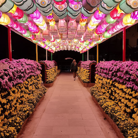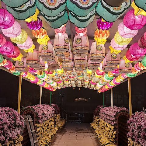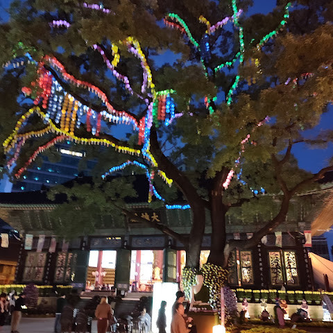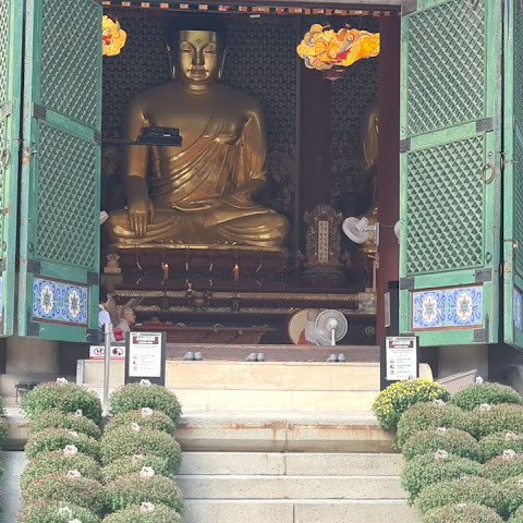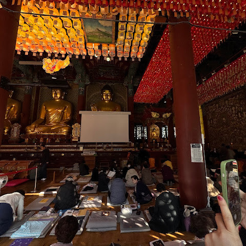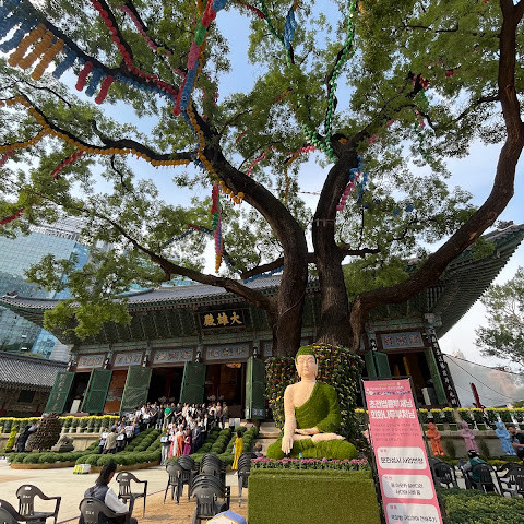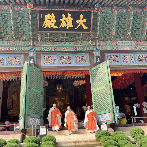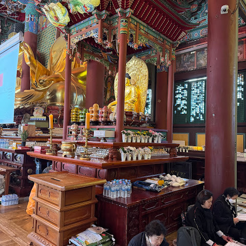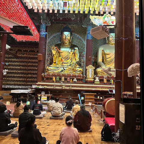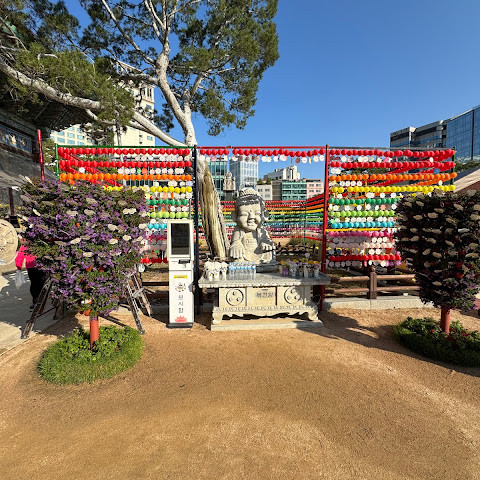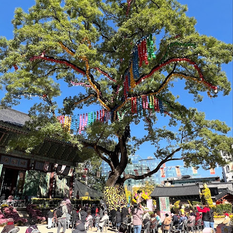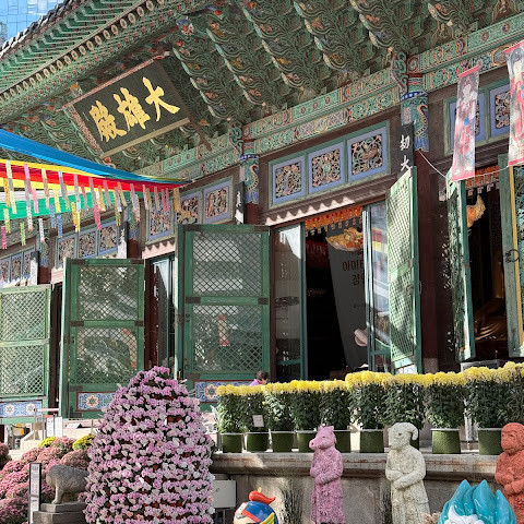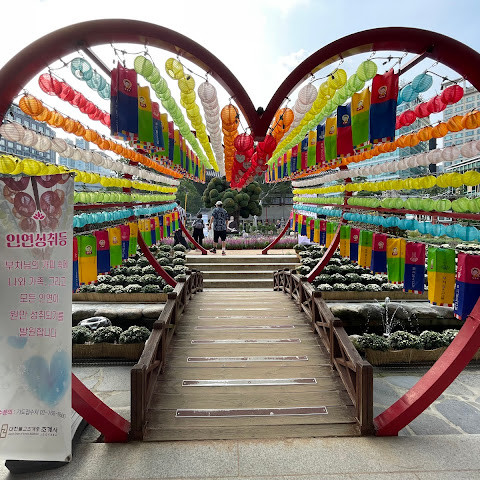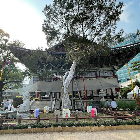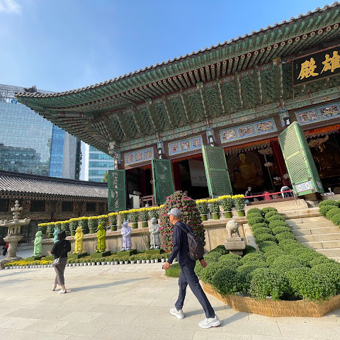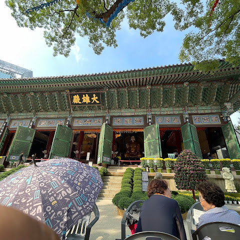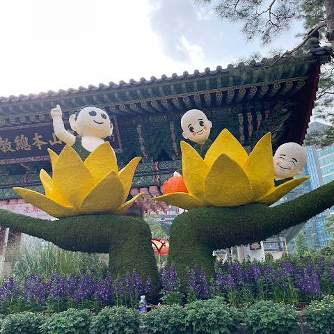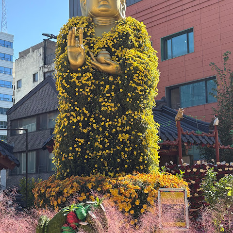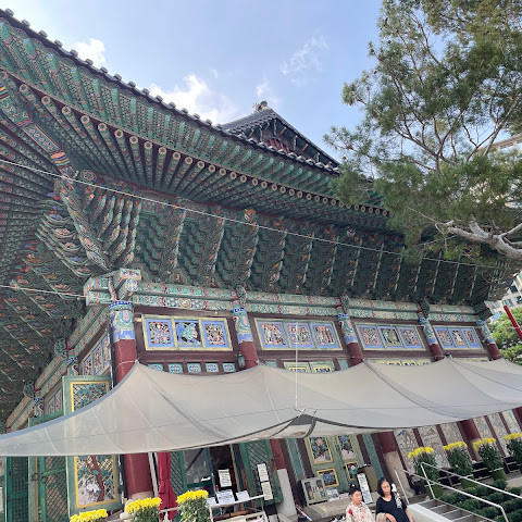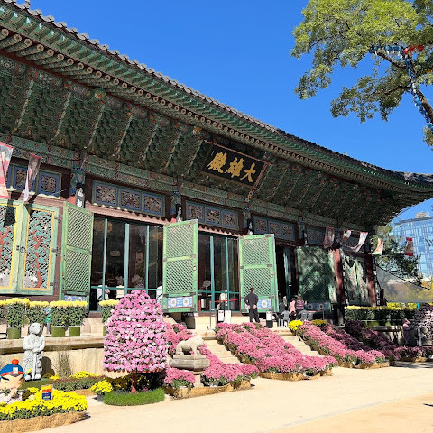 한국에서 가장 큰 불교 사찰 중 하나로, 도심 한가운데에 위치해 있습니다. 사찰은 진정한 평화를 선사합니다. 화려하고 티끌 하나 없이 깨끗해서 정원을 떠나고 싶지 않을 정도입니다. 마치 꽃밭을 거니는 것 같습니다. 내부의 좌석 배치와 기도 방식은 이슬람 사원과 매우 흡사해서 정말 놀랐습니다.