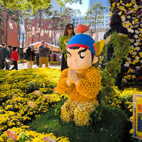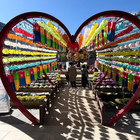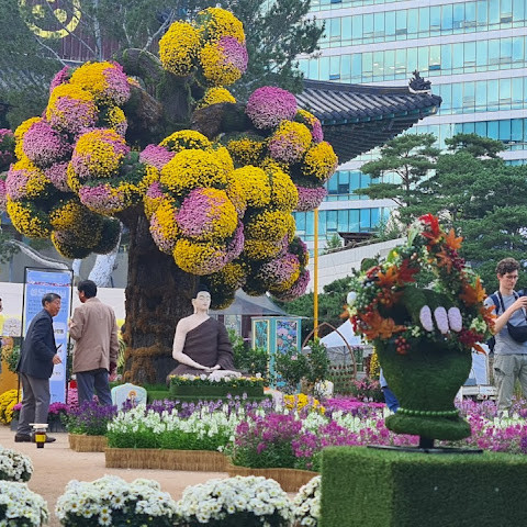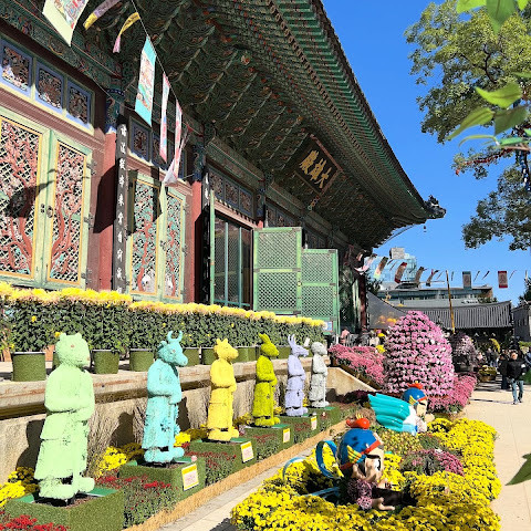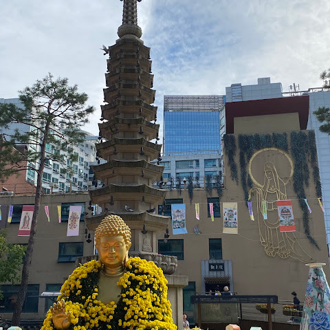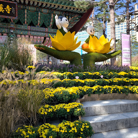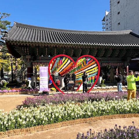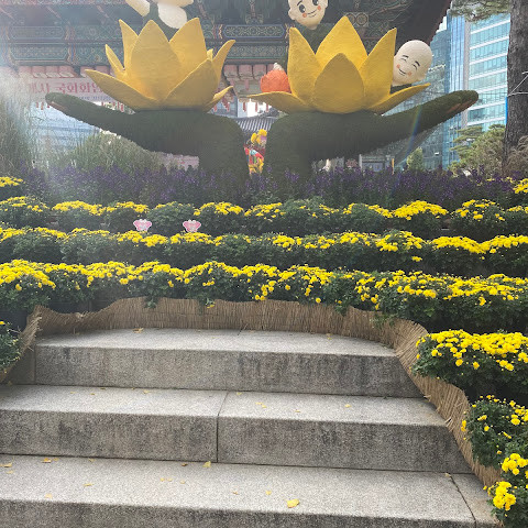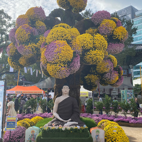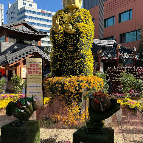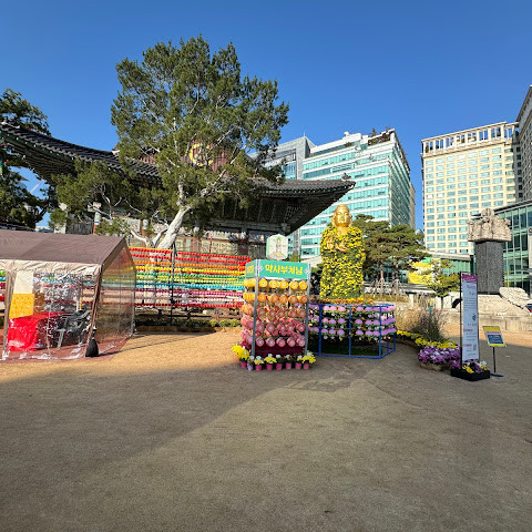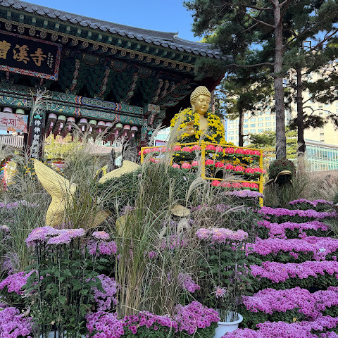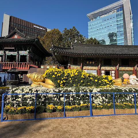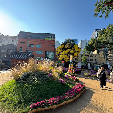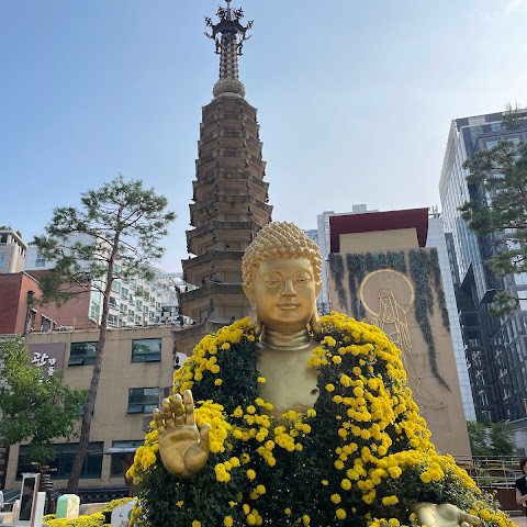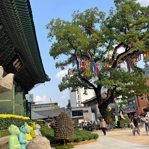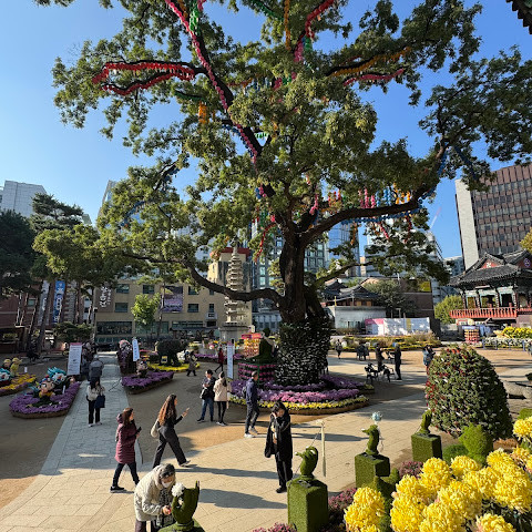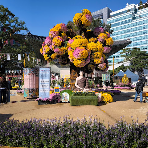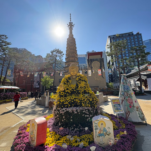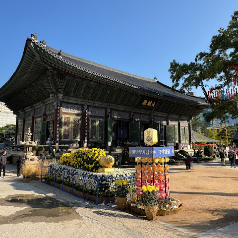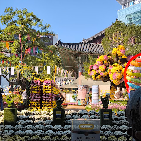 제가 방문했을 당시 가을 꽃 축제가 진행 중이었는데 정말 아름다웠습니다. 인사동 한가운데에 있는 아름다운 불교 사찰입니다. 강력 추천합니다.