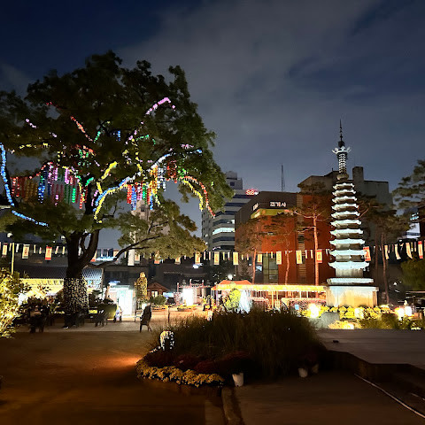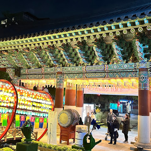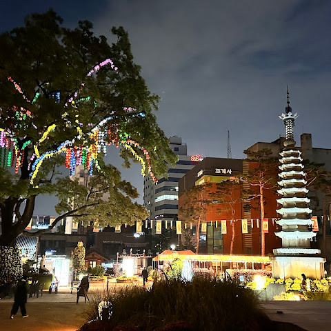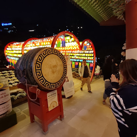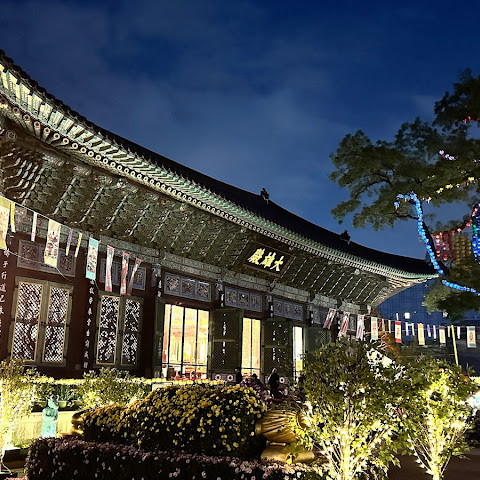아주 멋진 사찰입니다. 야간 조명이 아름답습니다. 버스 정류장 바로 옆이고, 명동과도 매우 가깝습니다. 분위기가 정말 좋습니다.