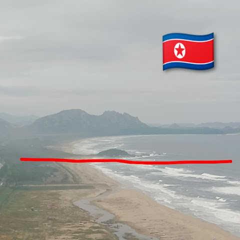 -.해금강과 금강산도 보이며 초소도 보인다.