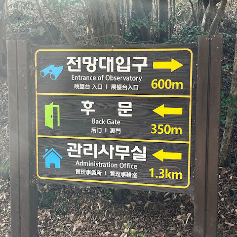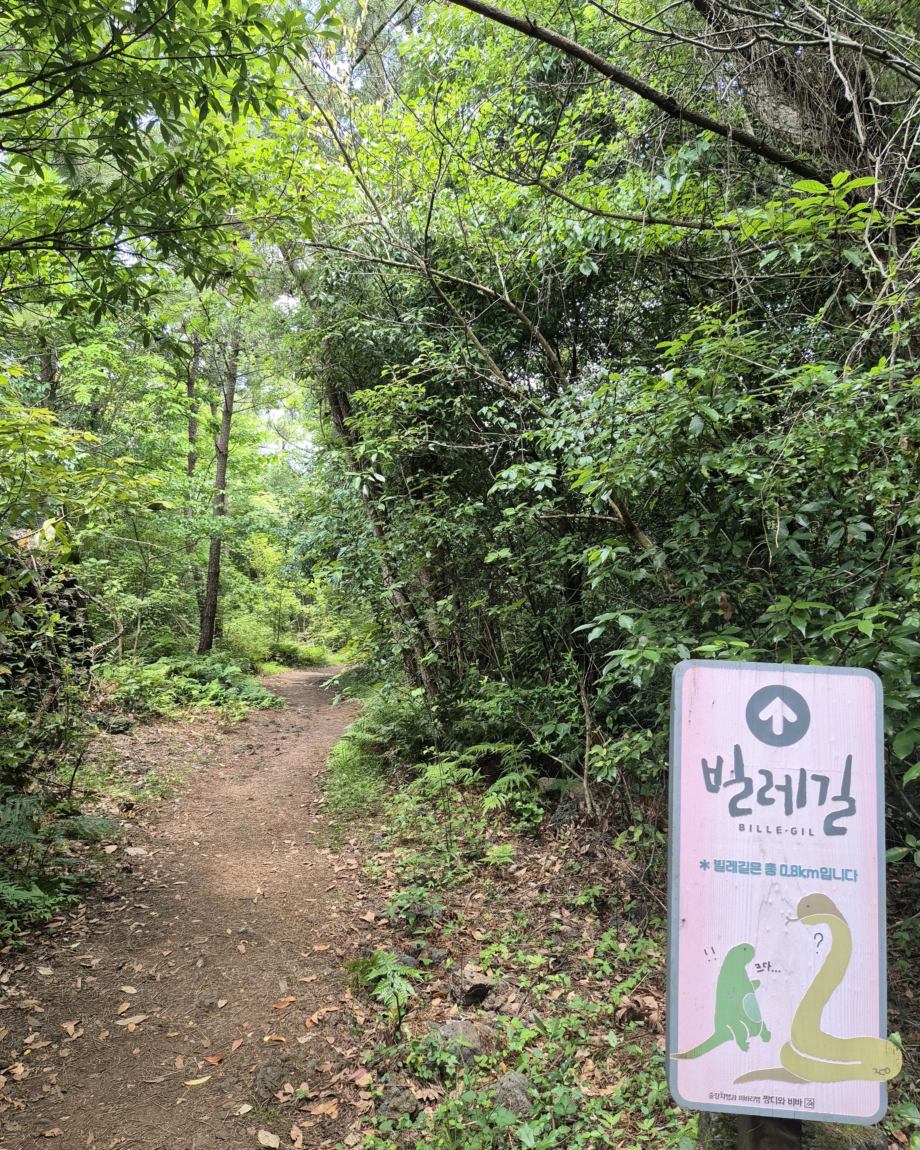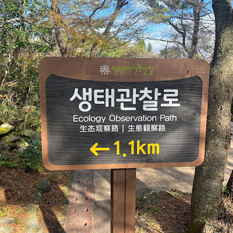 숲길산책로는 차량용 길 바로 옆이라 완전히 숲에 있다는 느낌이 다른 휴양림이나 오름에 비해 덜했어요. 걷는 중에 계속 옆으로 차가 지나가는게 보입니다. 오히려 차량순환로로 전망대 입구에서 전망대를 보고 다시 차로 오는 코스가 더 괜찮은것 같아요.