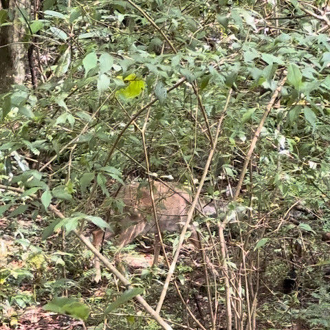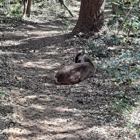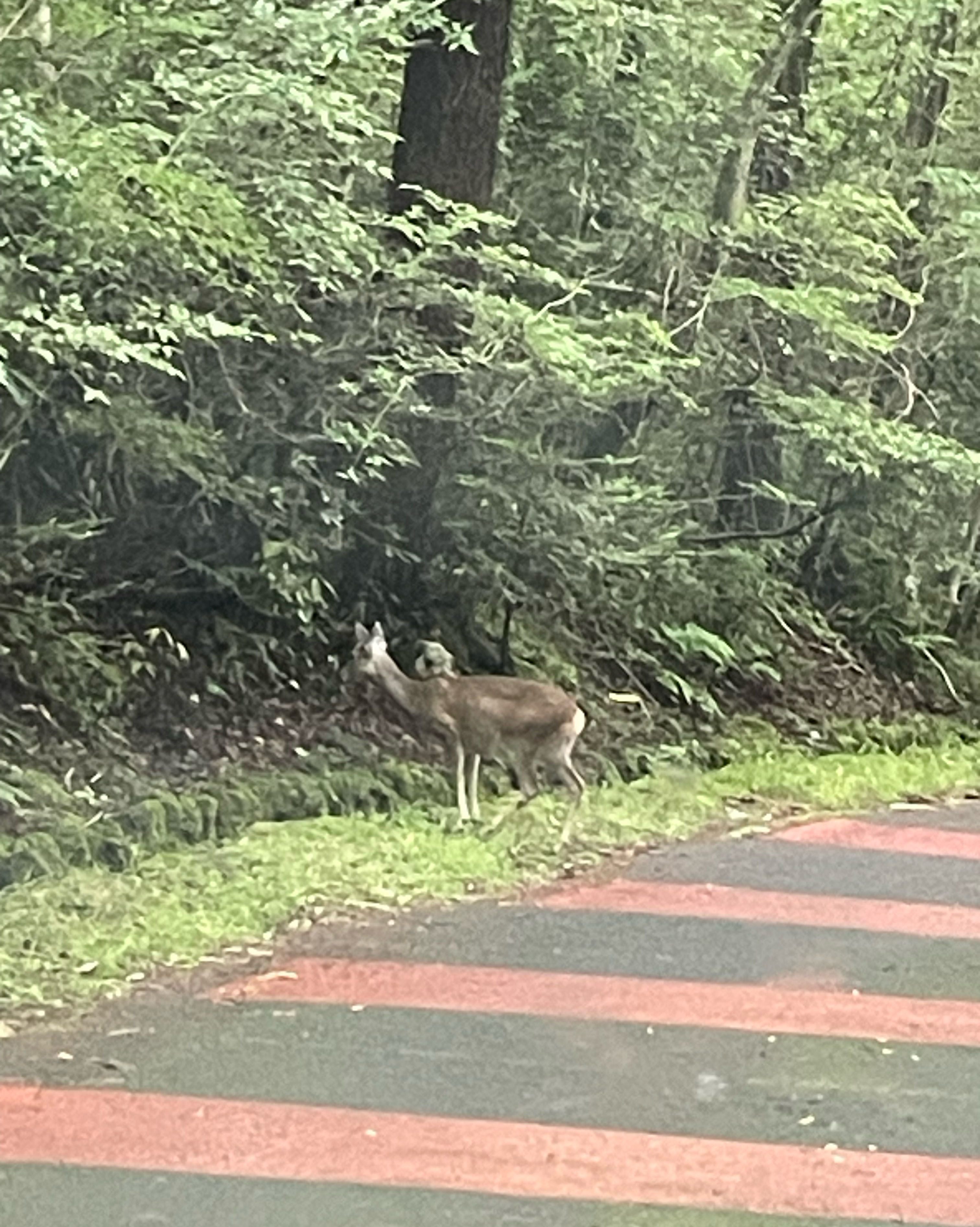 새끼 고라니(?)처럼 보이는 친구가 차량산책로 위를 느긋하게 걸어다녀용 :)