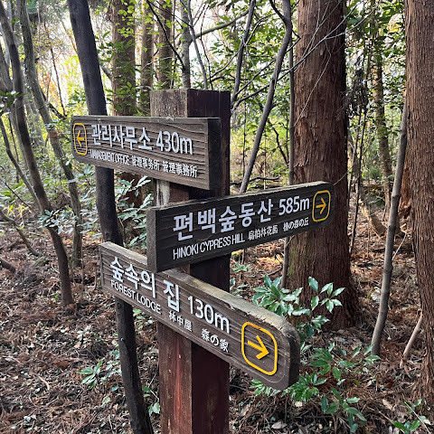 우리가 걸었던 길은 모두 나무 판자 길이거나 포장도로였습니다. 계단도 있었지만, 걷기에 편안하고 즐거운 하이킹이었습니다. 편백나무 숲을 볼 수 있어서 좋았습니다.