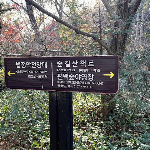 산책로가 매우 잘 관리되어 있었습니다. 걷기 너무 좋았고 법정악에 올라 멋진 뷰도 감상할 수 있었어요.