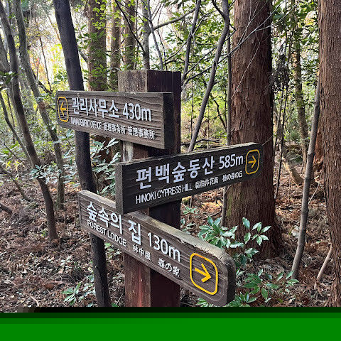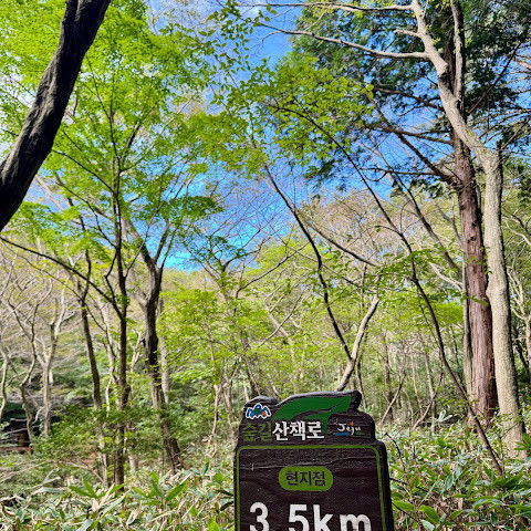 신선한 공기를 마시며 숲길을 걷고 싶은 분들에게 좋은 산책로입니다. 저는 안내문에 5km, 2시간 정도 걸린다고 적힌 숲길을 따라 걸었습니다. 3.5km 지점까지는 약 1시간 정도 걸렸습니다. 평지가 아니라 고르지 않은 곳이 있으니 주의하세요. 등산용 지팡이가 있으면 좋습니다. 3.5km 지점에서 주차장으로 돌아가는 힐링 트레일을 이용했는데, 약 30분 정도 걸렸습니다. 숲길을 따라 평행 고속도로가 있다고 들었는데, 아마 어느 지점에서든 픽업 서비스를 받을 수 있을 것 같습니다.