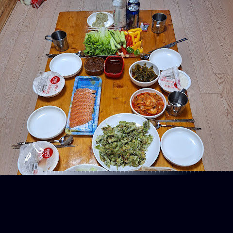 조리 및 식기가 완비된 주방이 있습니다. 전자레인지, 밥솥, 냉장고도 있습니다. 모든 식재료를 준비해 오시기 바랍니다.