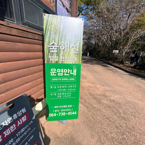 장마기간중 이용한 서귀포 자연휴양림내 산책 휴식 모든게 만족,최고입니다 단,어느곳에도 없는 팜플렛, 매표소 직원의 무심한 안내, 굴곡지며 높이가 다른 계단에도 무신경 가득, 계단에는 녹색과 미끄럼방지턱을 이용한 안전보행용 이용시설등이 필요해요