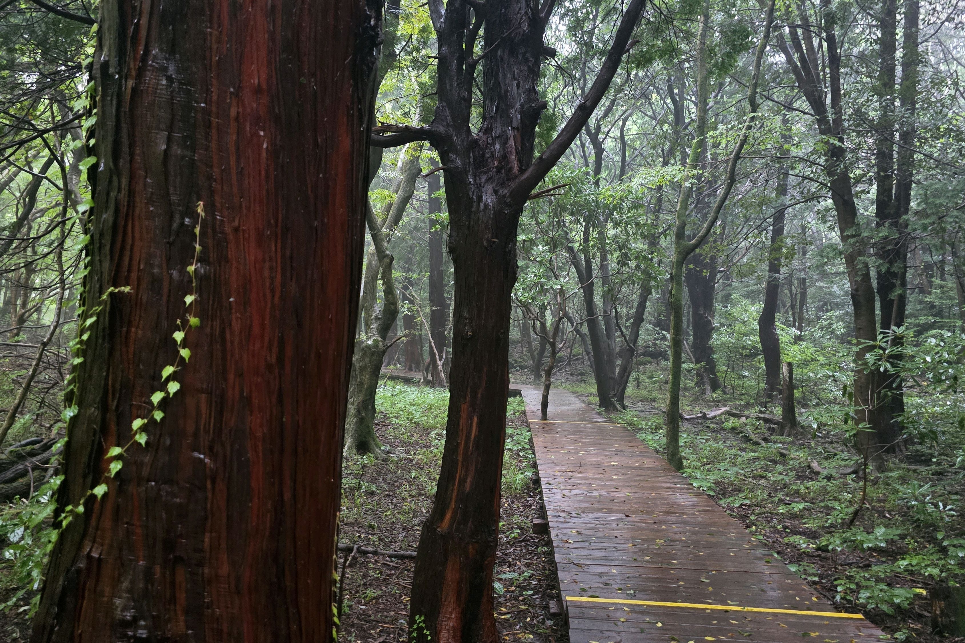 우리가 걸었던 길은 모두 나무 판자 길이거나 포장도로였습니다. 계단도 있었지만, 편안하고 즐거운 하이킹이었습니다. 편백나무 숲을 볼 수 있어서 좋았습니다.