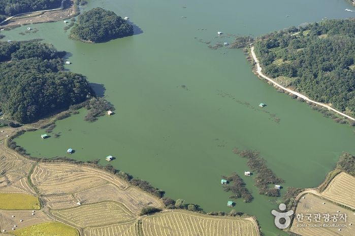 경기도 안성에 자리한 고삼호수는 일출 명소로도 알려져 있지만 새벽에 안개 자욱한 모습은 몽환적이고 서정적인 신비감을 느끼게 하는 장소이다. 김기덕 감독의 영화 [섬]의 주 무대인 고삼호수는 푸른 물과 그 위에 떠있는 좌대의 풍경이 인상적이다.