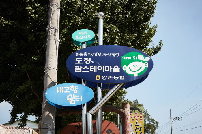 봄에는 딸기 농사, 가을에는 곶감 만들기로 분주 수백 년 묵은 아름드리 느티나무 11그루가 마을을 수호하듯 늘어서 있는 마을이다. 행정구역상으로 ‘인천4리’인 이 마을은, 진입로가 반듯하다고 해서 도정(道正) 마을로 이름 붙여졌다고 한다.마을 진입로 양쪽에는 딸기를 재배하는 비닐하우스가 빼곡이 들어서 있다. 일교차가 큰 도정마을에서 생산된 딸기는 달고 맛있어서 딸기따기체험을 하려는 도시인들의 발길이 끊이질 않는다. 또한 도정마을을 비롯한 양촌면 일대는 육질이 단단하고 당도가 높기로 소문난 두리감(월하감)의 산지로도 유명하며, 늦가을이면 집집마다 널어놓은 곶감더미가 장관을 이룬다. 도정딸기마을은 봄에는 딸기를 주제로 체험하고, 가을에는 곶감으로 농촌체험을 할 수 있다. 즉, 봄과 가을에 찾으면 좋을 체험마을이다. 딸기 체험으로는 딸기 인절미 만들기, 딸기쨈만들기, 딸기따기 체험 등으로 구성된다. 가을에는 밤고구마 캐기 체험과 곶감만들기 체험을 진행한다.