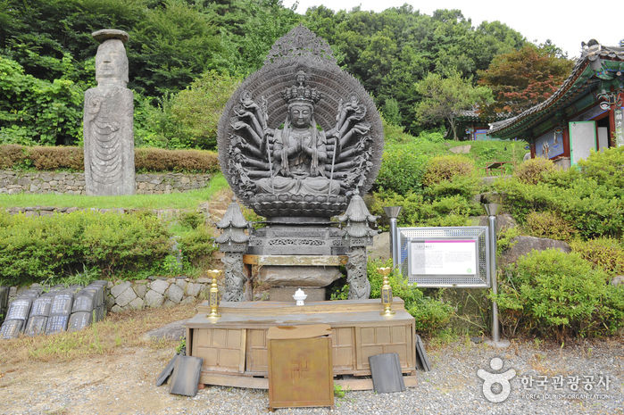 기슬리 석불입상은 커다란 돌기둥에 불상 2구가 같은 형식으로 조각되어 남북으로 놓여 있다. 높이가 약 5.7m로 매우 길어 보이는 느낌을 준다. 이 두 석불은 모두 민머리로 그 위에 지혜를 상징하는 상투 모양의 육계가 튀어나와 있으며 얇은 자연석을 둥글게 가공하여 갓으로 사용하였다. 사각형의 비대한 얼굴에 가는 눈, 삼각형의 짧은 코, 두터운 입, 짧은 귀 등 윤곽이 뚜렷하고, 목에는 번뇌와 업, 고난을 상징하는 삼도가 선명하다. 법의는 두 어깨를 가린 통견으로 원통형의 신체를 감싸고 있다. 손 모양은 중생의 모든 불안을 없애주고 소원을 들어준다는 자세를 하고 있다. 이 석불입상은 고려 시대의 전형적인 지방 양식으로 안성지역에는 이러한 석불입상이 다수 남아있다. 석불입상 옆으로는 쌍미륵사의 용화전이 조용히 자리하고 있고 경내에 각기 다른 모습과 표정의 오백 나한들이 있는 오백 나한전과 흐뭇한 표정을 짓고 있는 산신을 모신 산신각이 있다.