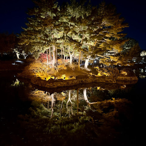 아름다운 곳이에요. 정원에 조명이 켜진 저녁 시간에 산책하는 것을 추천합니다. 빛이 어우러져 다채로운 가을 단풍과 오래된 역사적인 건물들이 거울처럼 반사되는 모습이 독특한 풍경을 만들어냅니다.