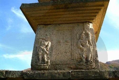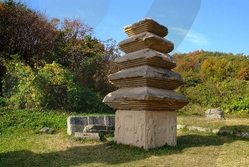 높이 9m의 5층석탑으로 신라시대 석탑 양식의 전형적인 특징을 보여주는 큰 규모의 석탑으로 이중기단을 가졌고 상륜부에는 노반만 남아 있으며 하층기단은 비교적 넓게 만들어져 안정감이 있다. 1층 몸돌 4면에 도깨비형태의 쇠고리가 장식된 2짝의 문을 조각하고, 각 면에 한 쌍의 인왕상을 정교하게 새긴 희귀한 수법을 보여 주고 있다. 조각 수법으로 보아 8세기의 작품으로 평가된다. 전체 비례가 아름답고 조각의 수법도 우수하여 8세기 전반 석탑의 새로운 양식을 보여주는 걸작품으로 평가되고 있으며, 신라 석탑 연구에 귀중한 자료이다.
