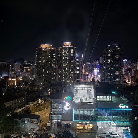 이건 케이블카예요. 덕분에 남산의 멋진 경치를 아주 적은 노력으로 감상할 수 있었어요. 케이블카를 발명한 사람에게 신의 가호가 있기를.