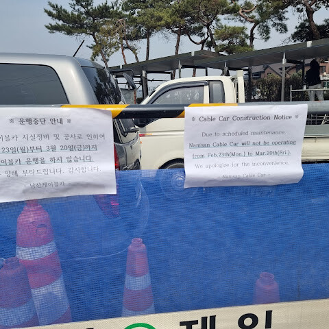 아쉽게도 케이블카는 3월 20일까지 운행을 중단했어요. 미리 못 봐서 못 올라갔지만, 괜찮아요. 서울에 다시 올 이유가 생겼으니까요. 그 후 오레미 푸니쿨라를 타고 내려왔습니다.