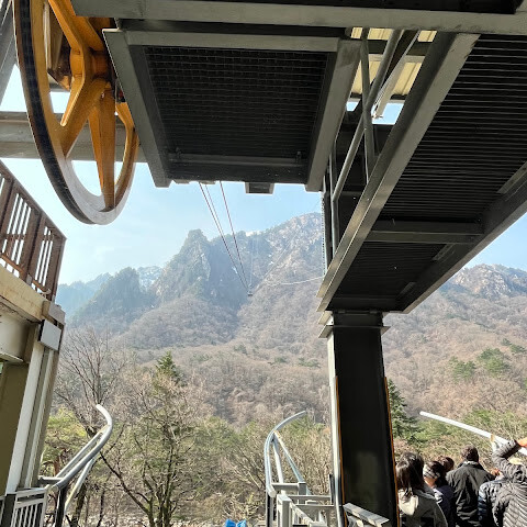 케이블카를 타고 권금성을 꼭 방문하세요. 숨 막힐 듯한 경치와 바람을 만끽할 수 있습니다!