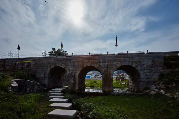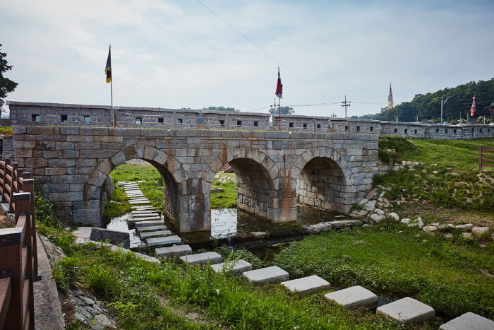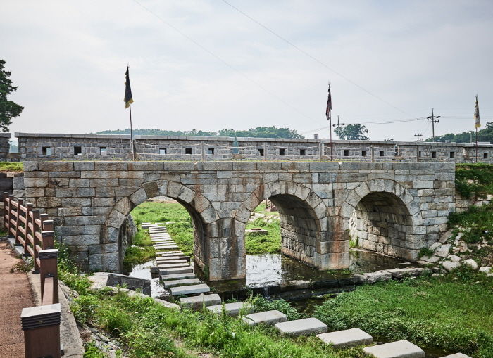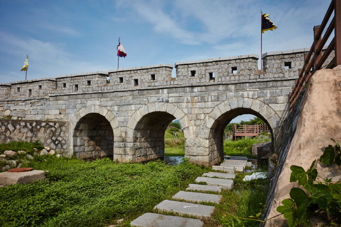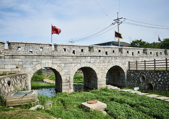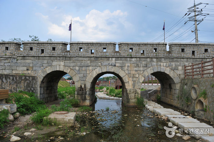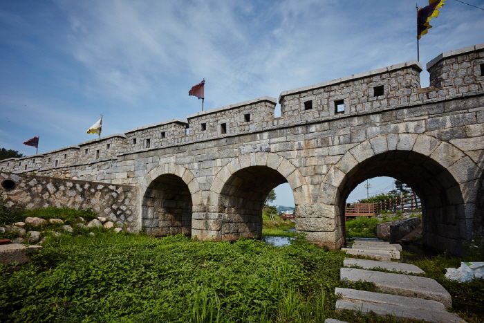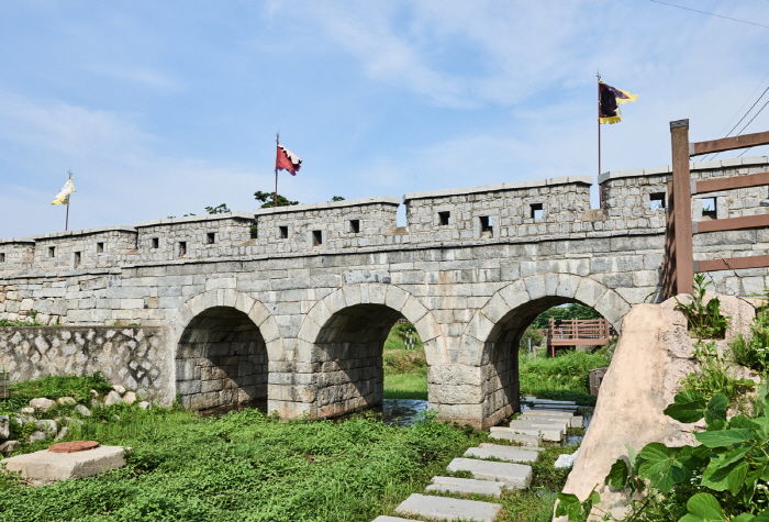 이 수문은 강화산성의 내성에 연결되어 강화읍을 통하여 흐르는 동락천을 가로지르는 수문으로서 조선 숙종 37년(1711)에 축조되었다. 3개의 무지개 모양을 한 홍예문으로 된 이 수문은 화강암으로 축조하였으며 길이는 18.2m, 높이 2.7m, 홍예의 높이는 1.7m, 폭은 3m이다. 1910년 갑곶리 선착장을 신설하고 그 옆 동락천 하구의 교량으로 사용하다 1977년 하수문 자리로 이축하였다가 1993년 동락천 복개공사로 인하여 상수문 자리로 이전 복원 되었던 것을 최근 서문으로 다시 이전, 현재에 이르고 있다.