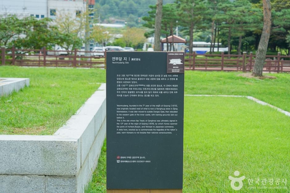 강화산성 서문 건너편에 있는 연무당은 고종 7년(1870년) 강화유수부의 군사들을 훈련시키기 위해 세워진 조련장이다. 그러나 이곳에서 1876년 보초와 대포를 앞세운 일본군에 의해 강압적인 강화도조약이 체결됐다.