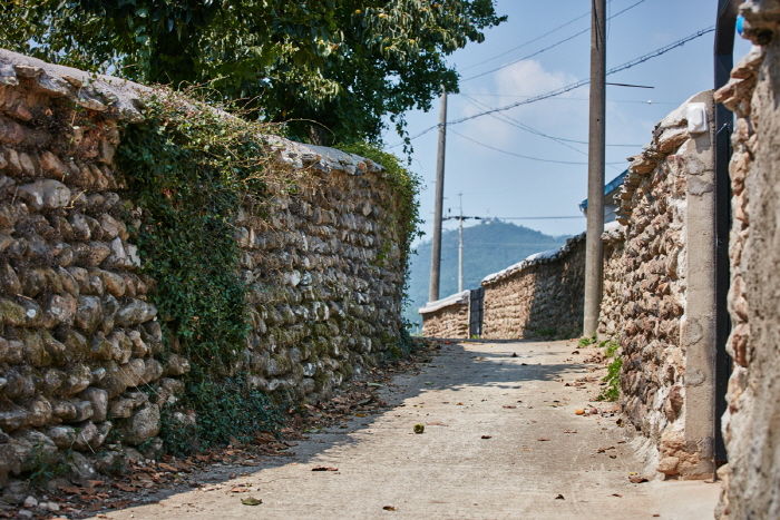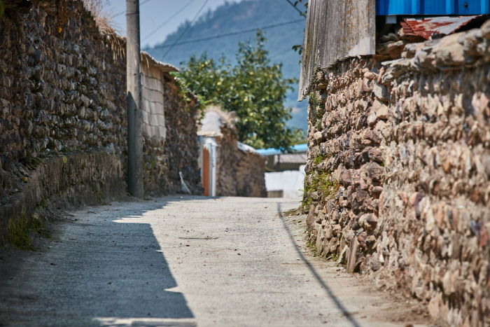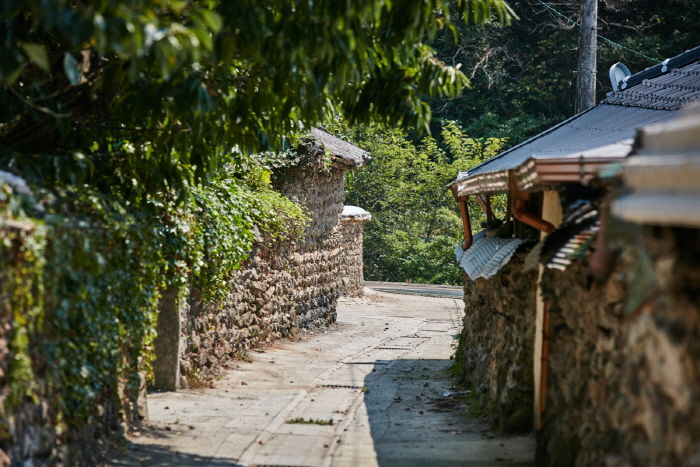 또한 담장 역할을 하는 부속채도 담장과 같은 높이와 방식으로 축조되어 서로가 조화를 잘 이루고 있다. 담장의 높이는 2m 정도로 높은 편이고 이는 병영 마을이라는 특성과 무관하지 않은 것으로 보이며 마을 안길이 직선형으로 되어있어 담장이 한층 정연해 보인다. 특히, 하멜 일행이 1656년부터 1663년까지 7년간 이곳에 머무는 동안 그들로부터 습득한 것으로 전해오는 담쌓기 방식인, 중단 위쪽으로 얇은 돌을 약 15° 정도 눕혀서 촘촘하게 쌓고, 다음층에는 다시 엇갈려 쌓는 일종의 빗살 무늬 형식(이곳에서는 이 형식을 ‘하멜식 담쌓기’라 부른다) 은 타 지방과 다른 독특한 방식을 보여주고 있다. * 담장형태 - 토담길이 약 10,000m의 돌담, 토석담 * 쌓은 형식 - 하멜 일행이 약 7년간 머물면서 알려준 일종의 빗살 무늬 형식의 하멜식 담쌓기 * 마을형성 - 조선시대 옛 병영 * 문화재 - 전라 병영성지(사적) 등 3건