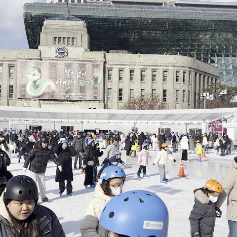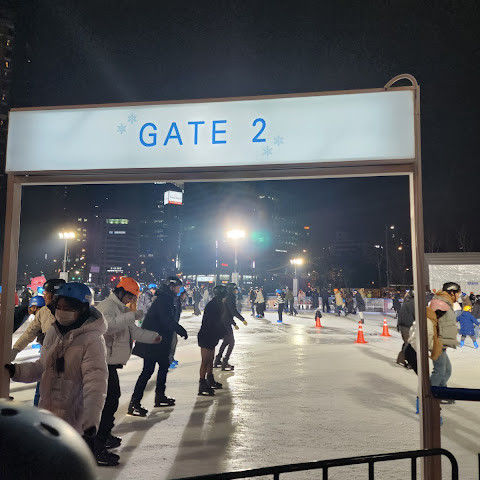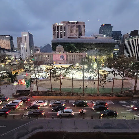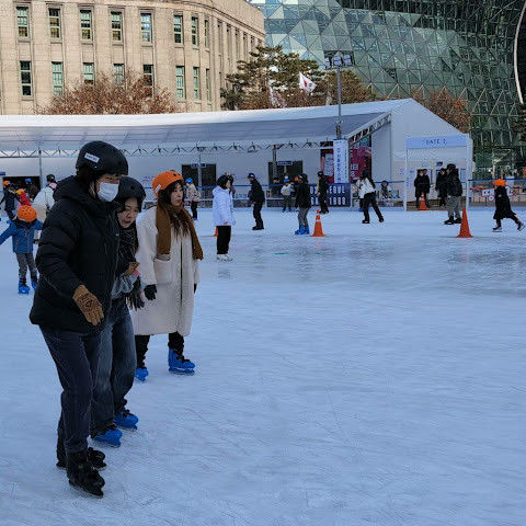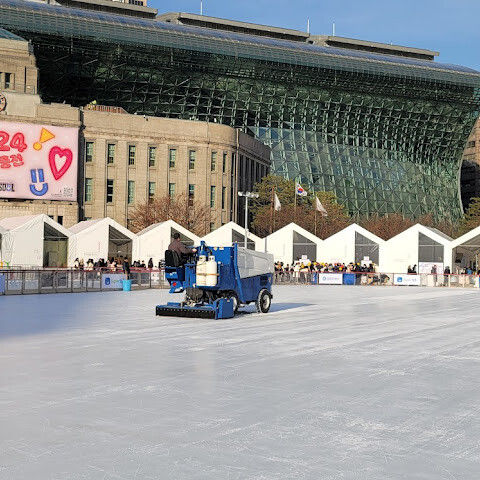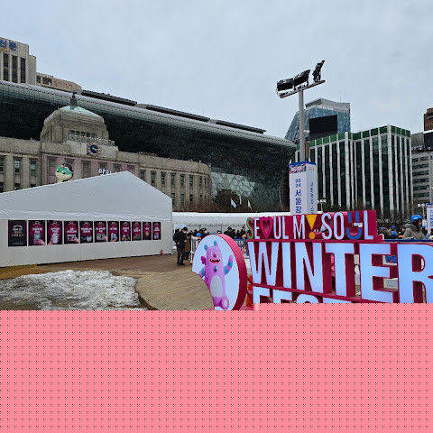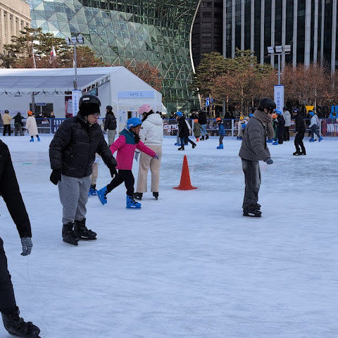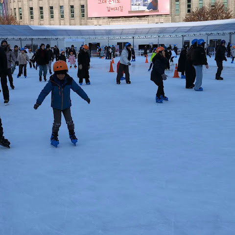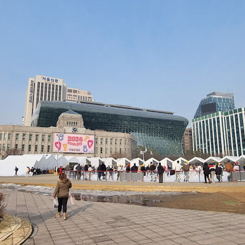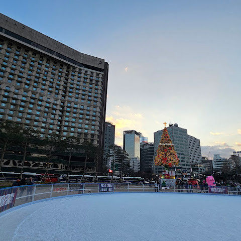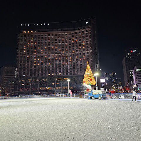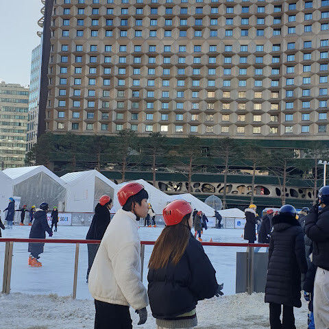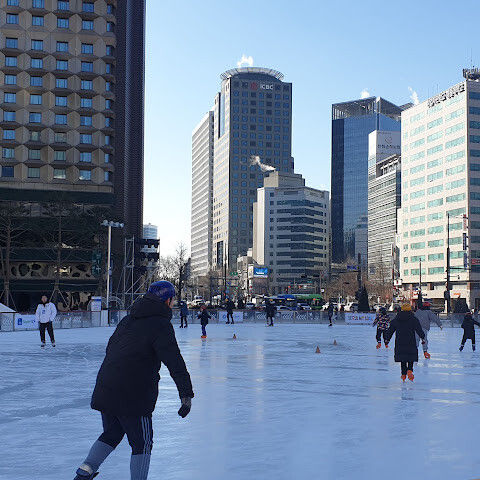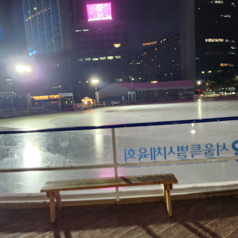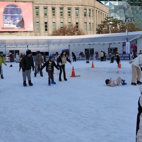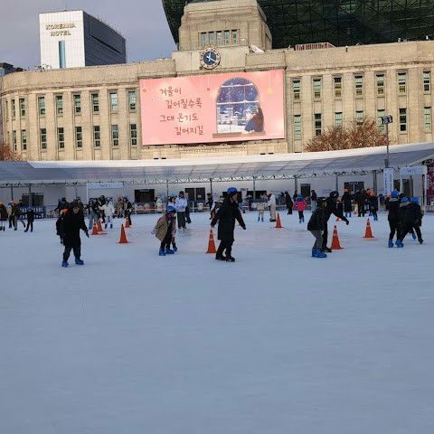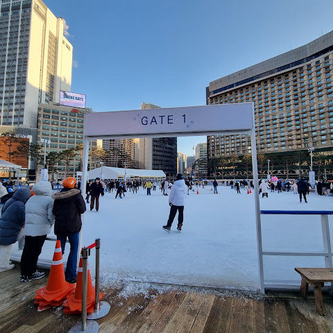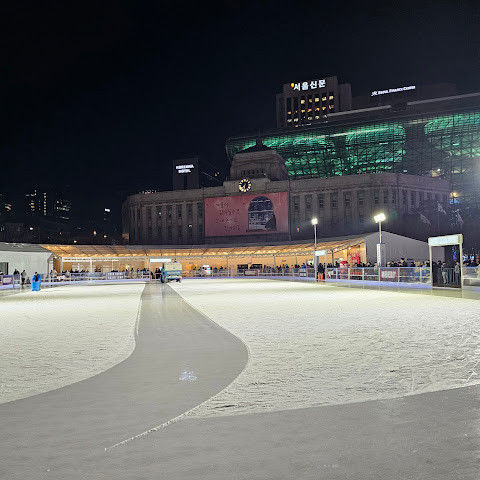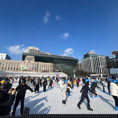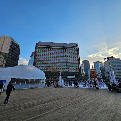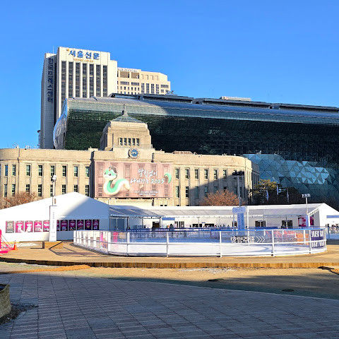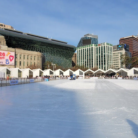 서울 시청 앞의 매우 시원하고 탁 트인 공간으로 겨울철에는 서울 사람들의 즐거움을 위해 거대한 빙원이 형성됩니다.