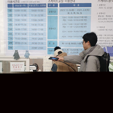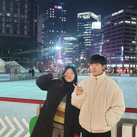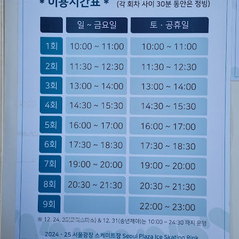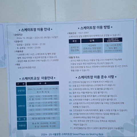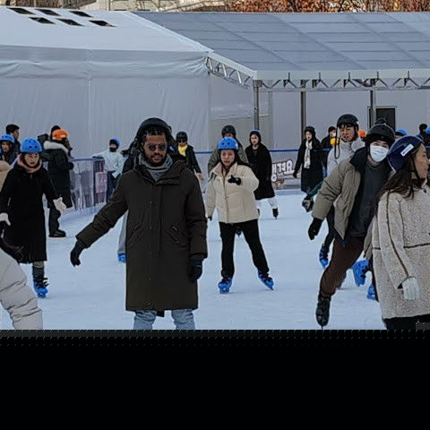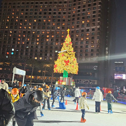 야외 아이스링크가 설치되는 크리스마스 기간에는 최고입니다. 스케이트 대여 포함 1000w. 음악과 분위기를 즐겨보세요. 크리스마스 당일에는 사전 예약이 필요합니다.