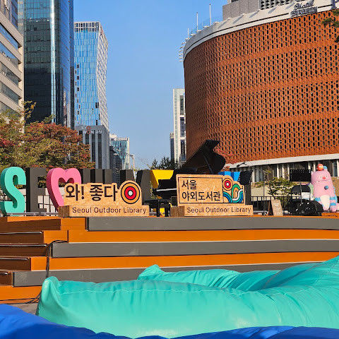 야외 도서관이 열리고 있는 시청 서울 광장. 바쁘게 돌아다니는 시내에서 여유를 가질 수 있어서 좋았음. 다만 화장실이 좀 번거로움.